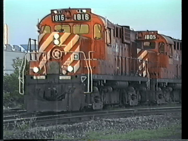 Cab ride over the Drummondville sub. North out of Foster. April,1988. CP Rail 1839, RS18u. A modified chopnose. The 1839 performs assorted local switching at Drummondville. Some good industrial scenes for Model Railroaders.