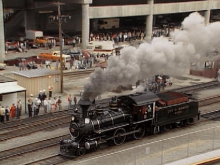 An international steam celebration at Vancouver, British Columbia, in 1986. There are more than 20 working engines here. Canada, USA, and England participate.