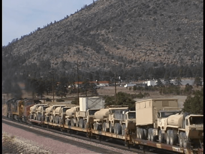 A Military train is seen on the busy Transcon, at East Flagstaff.