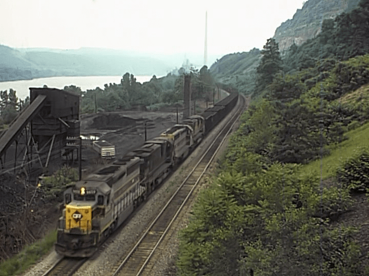 Chapter 4. Mingo Jct. A map is provided of Ohio lines.! Seen along the Ohio River at Stuebenville. Alco power 6751 with leased CN 2310 / 2332 and an ex: Erie Lackawanna 6663 in this lash-up.