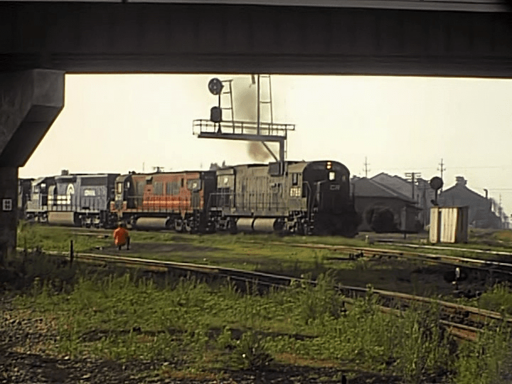 A former Erie Lackawanna is on the lead at Empire, Ohio. The EL unit has updated cab signal equipment to lead a train.