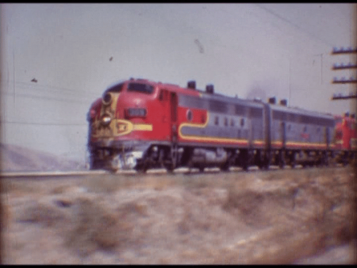 A train ride is included from San Bernardino station. Witness Sullivan’s Curve before this was altered. The camera is onboard the passenger cars with various views. The Chief behind engine 307 is leaving Barstow and our cameraman to end the show.