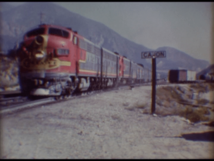 A train ride is included from San Bernardino station. Witness Sullivan’s Curve before this was altered. The camera is onboard the passenger cars with various views. The Chief behind engine 307 is leaving Barstow and our cameraman to end the show.