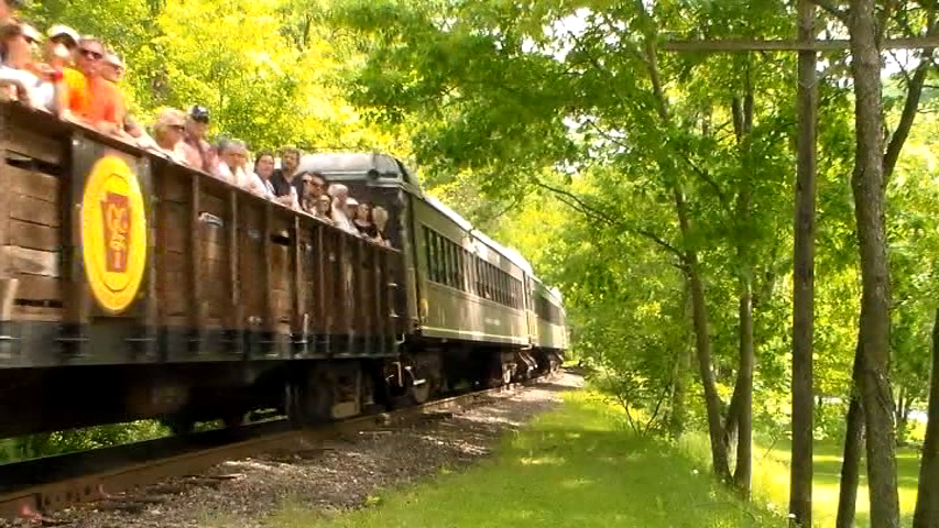 Must be tourist season. There are plenty of passengers after the freight cars. Business appears to be thriving. FYI, Oil Creek is in Pennsylvania. Would have been beneficial to hear about the freight traffic.