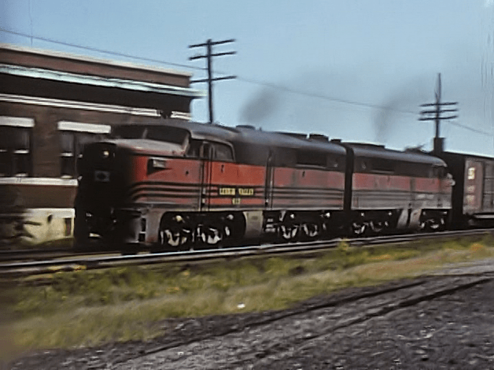 Freight and Passenger trains. A fascinating roster of locomotives in this classic time period. Many 40′ freight cars. Some steam included. Plenty of freight. The 1957 fantrip is well filmed.