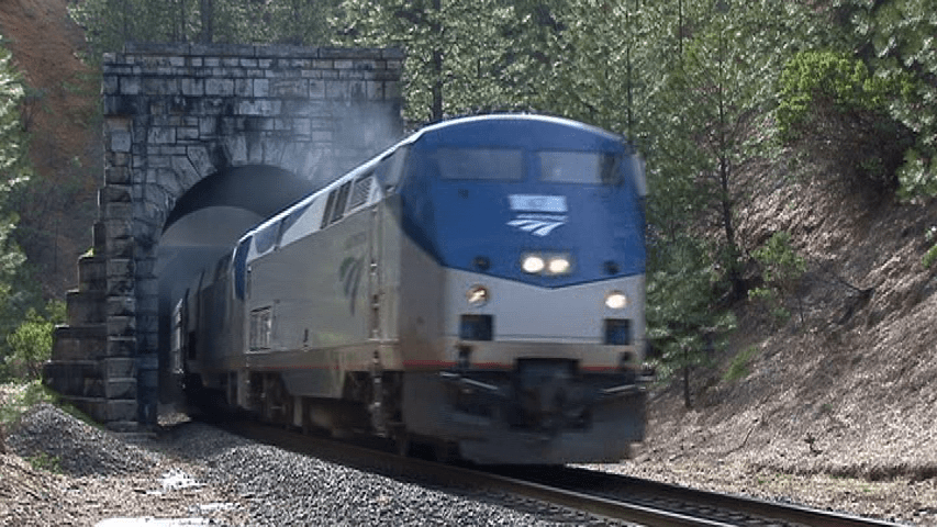 Amtrak 26 exits a partially daylighted tunnel at Applegate.