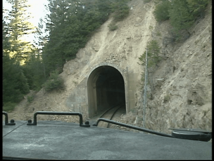 V-RIXPTL is Richmond, California to Portland Vehicle Train, is seen above Indian Creek. Pentrex provides both external and from the cab of this move. Here is Tunnel 4.