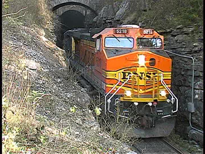 Cumberland Tunnel. A Northbound freight is Q-126. Bnsf 5218 leads this one downgrade.