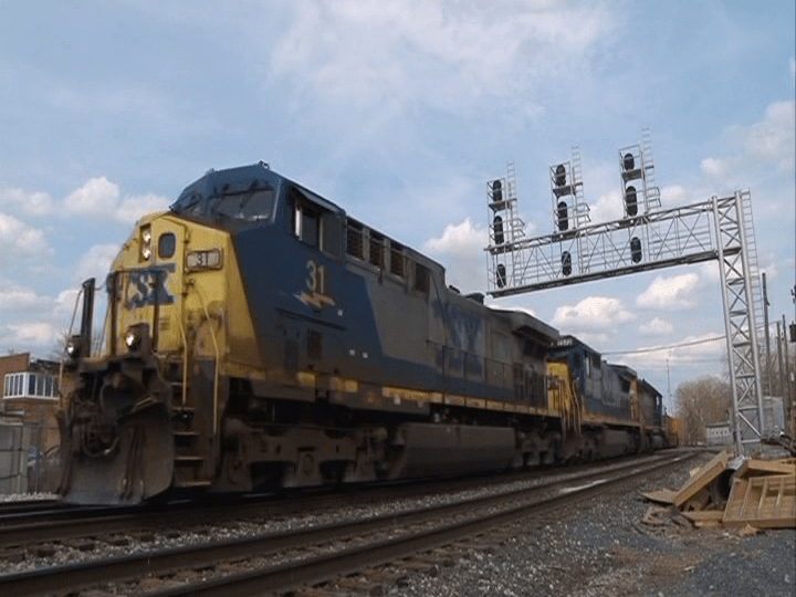Begins at the Blue Island bridges. A Norfolk Southern heritage engine, Interstate (8105) fronts a BNSF move of auto racks.