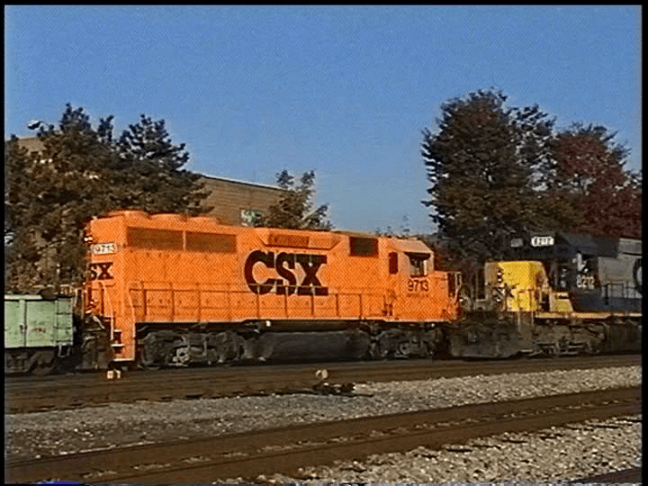 CSX 9713 (GP40)in MOW Orange meets CSX helpers at Cumberland Yard. Engine 8212 (SD40-2) fronts the helper set.