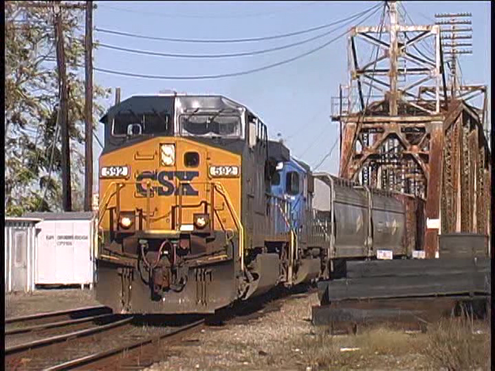 Still in Tennessee for several more scenes here… CR Drawbridge crosses the Cumberland River. CSX 592 leads an ex:CR as CSX 8840 on train Q-647.