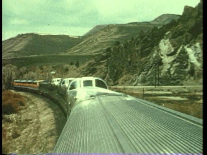California Zephyr in the 1950s. Color film. Similar to the 50s era Railroad promo films. News reporter has a Salt Lake City to San Francisco train. Above is a Burlington Route leaving Chicago area. Short film titled Vista Dome Adventure. Plenty of onboard the passenger cars footage.