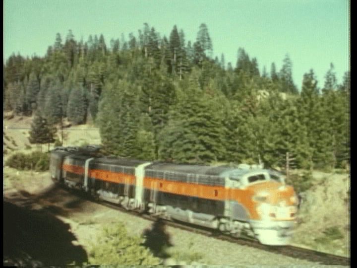 California Zephyr in the 1950s. Color film. Similar to the 50s era Railroad promo films. News reporter has a Salt Lake City to San Francisco train. Above is a Burlington Route leaving Chicago area. Short film titled Vista Dome Adventure. Plenty of onboard the passenger cars footage.