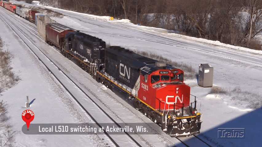 Canadian National has transformed the former Wisconsin Central from a regional railroad into an important part of what amounts to a transcontinental route. This update is in the traditional trainwatching format. On-screen graphics convey details. Live audio, narration by Kevin Keefe and guest speakers. A surprising variety of paint schemes. Local L150 is at the Wisconsin and Southern Interchange.