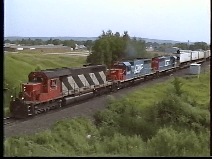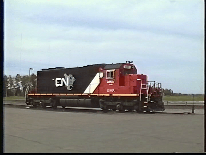Three engines represent a current version of the railroad in 1994. DW&P, CN North American and a CN zebra stripe.