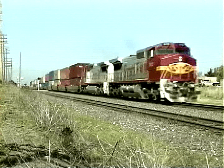 A tour of this subdivision in Santa Fe days. Plenty of newer Warbonnets. Solid sets of blue and yellow, as well. Long looks of freight consists. Although not the best angles to identify the cars. Still, Model Railroaders should get the general train details.