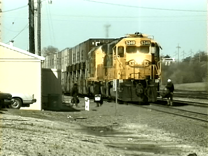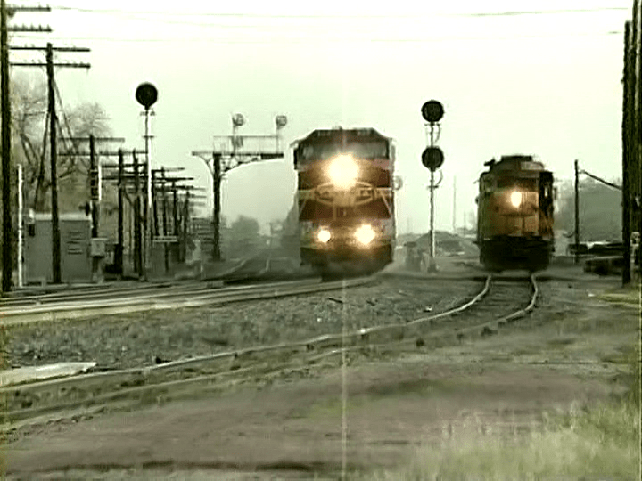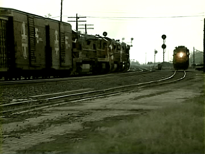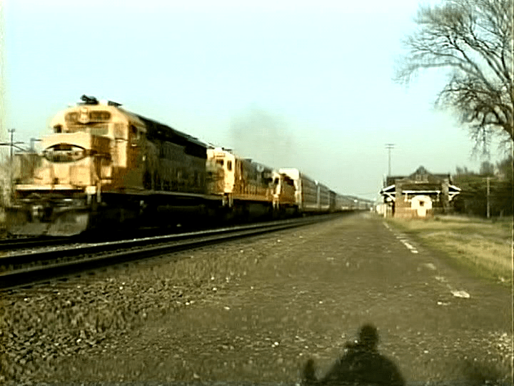 At Argonia, SD75 #202 on it’s first run to the West with a long Piggyback move. Train #199 is Eastbound. Many Roadway trailers on this one. More Intermodal traffic is seen.