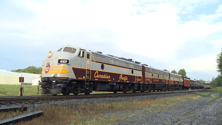 The Canadian Pacific F7 trio is led by 4107. Resplendent in an older livery. They roll through Rockford on a London, Ontario return with a business train. Short Lines has several visits in Southern Minnesota. St. Croix Valley, Minnesota Commercial plus TC&W.