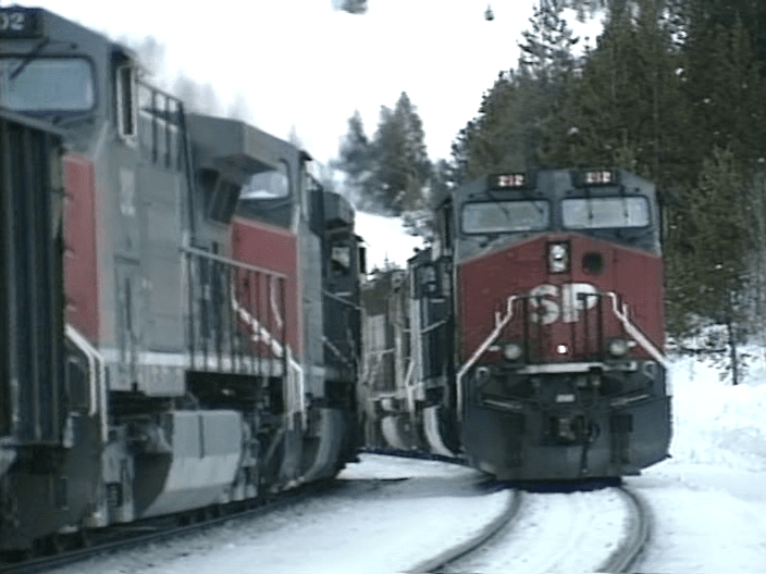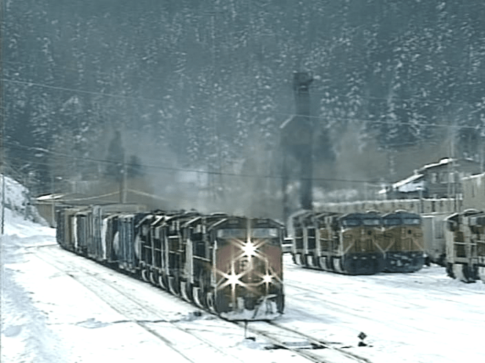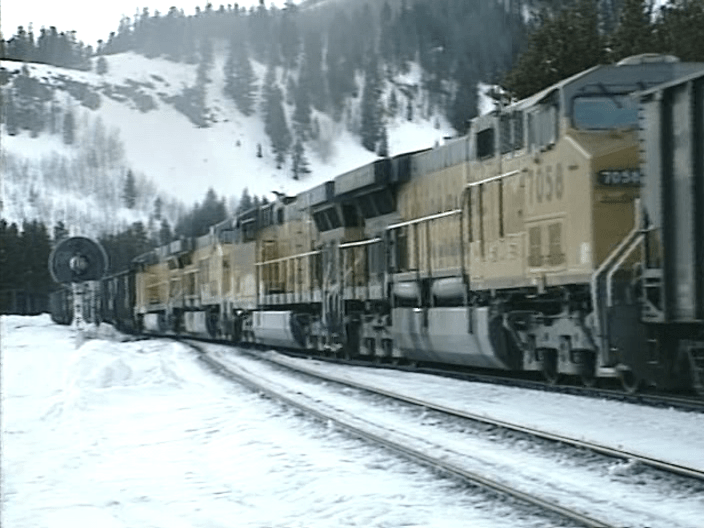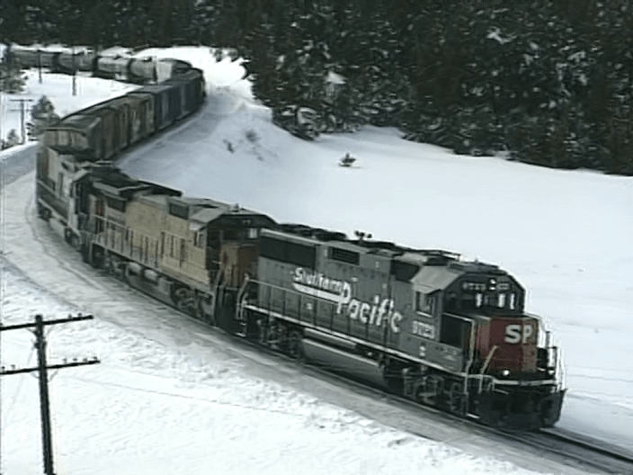 Here is a final look at Tennessee Pass. Located in Central Colorado. Highest railroad summit in the United States at over 10,000 feet. The route crosses the Continental Divide. This was recorded in 1997. Southern Pacific AC44 locomotives were relatively new and plentiful. There are still EMD units working the line. Both SP and UP locomotives are used.