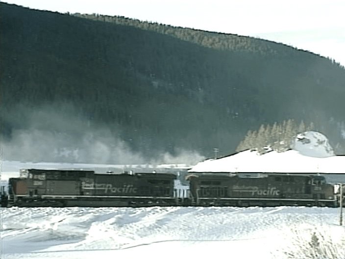 Begins in January, 1997. Southern Pacific #254 on point. Train CHROM routed from Chicago to Roper Yard in Salt Lake City. This move enters Minturn. Check the parked helper sets. The helpers are added to Eastbounds here.