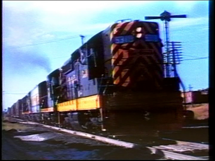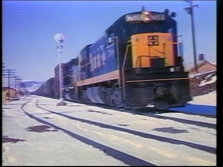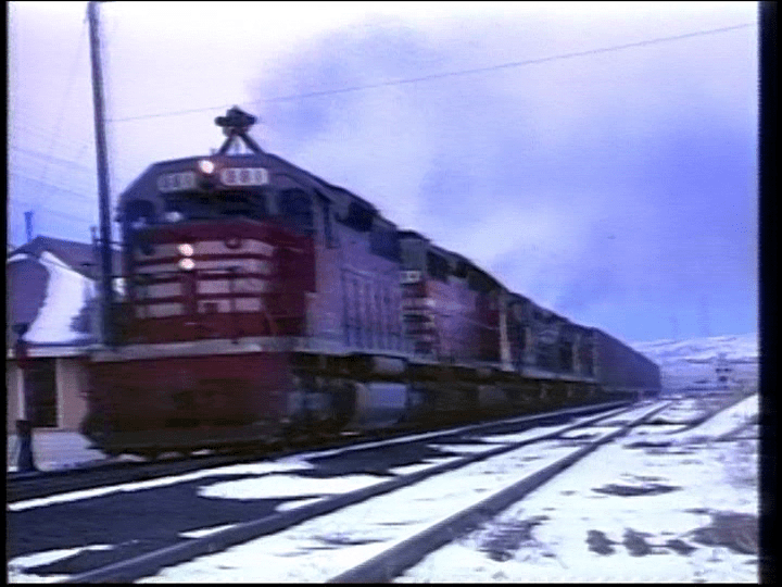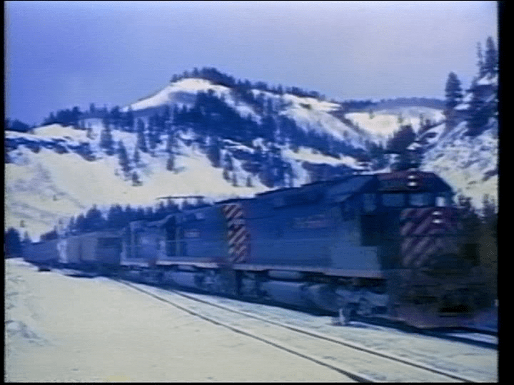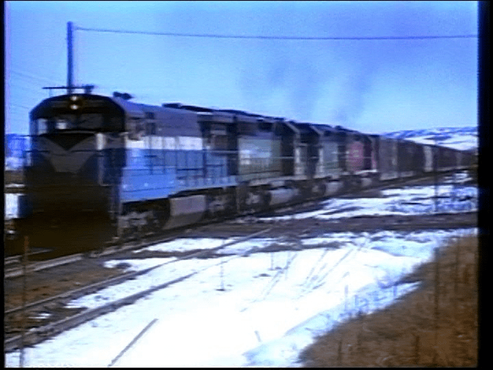 Here is a BN freight. The BN Merger is in place. A GN U33C leads a trio of SD40 engines. Notice the new BN painted units and a red CB&Q hauling mixed freight at Palmer Lake. Some narrative errors. This is a U33C, not a U30C. Several train chases contain different locomotives. Either different trains or power swaps.