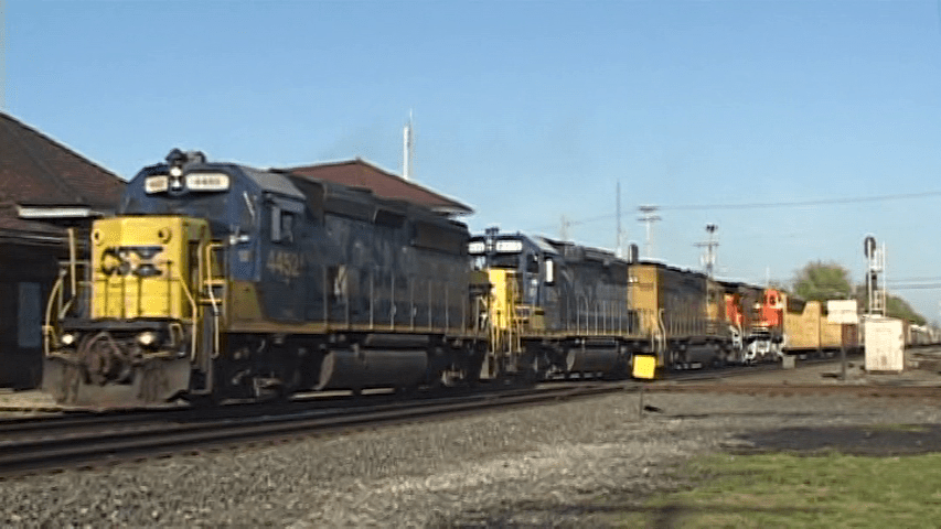 The hotspot at Deshler, Ohio is fairly common on train videos. Usually, the former B&O in front of the old Interlocking Tower and the depot are the scenes. However, Greg Scholl utilized assorted viewpoints to document the action on a variety of dates from 2006 to 2009.