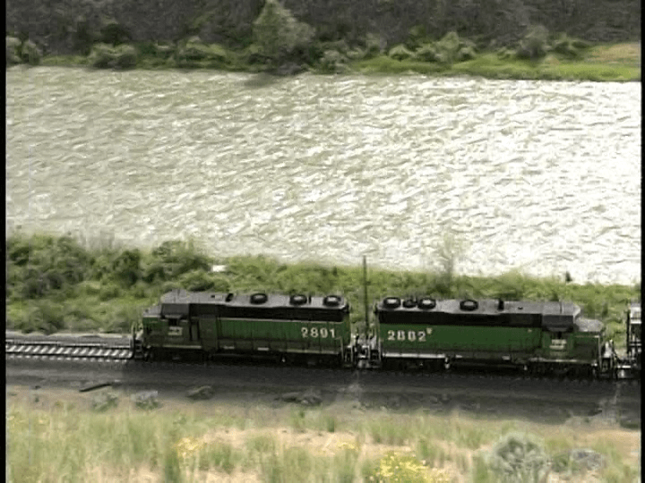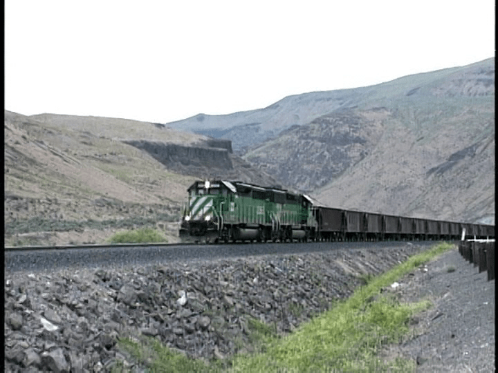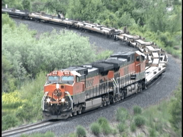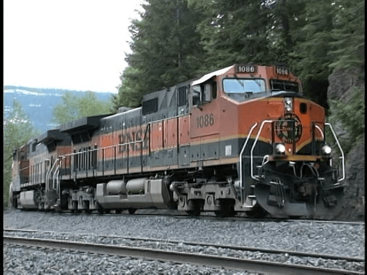 A show loaded with plenty of action and rugged scenery. Burlington Northern locomotives in original paint front many of the trains. BNSF Dash 9 units are in a good percentage, as well.