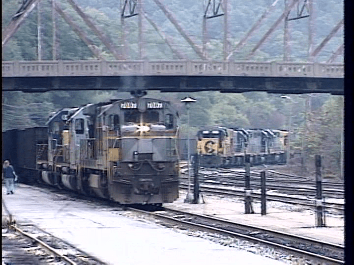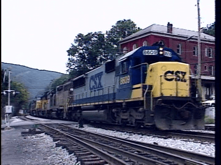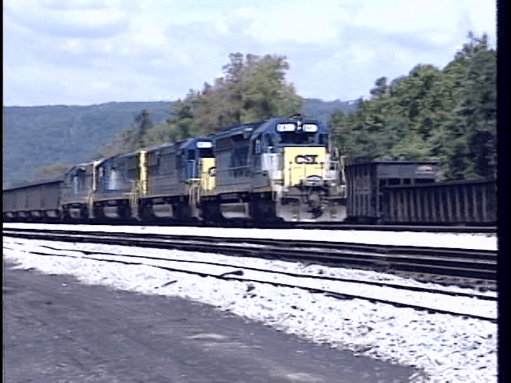 CSX West End is a former B&O route between Grafton and Keyser, West Virginia. Sporadic coverage of the line. The advertised coverage of famous locations is a stretch of what is actually shown. There are only several units in predecessor paint. EMD SD50 locomotives both lead and help on the majority of trains.