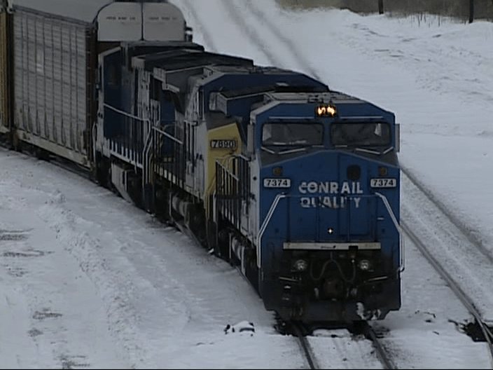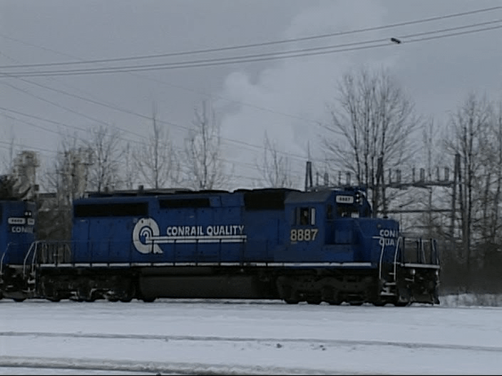 Chicago Line action. This spot is about 2 miles west of Selkirk Yard. Game Farm Road. Checkout the hot exhaust from Conrail 7374 on this cold day.