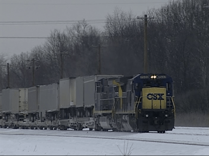 The following day begins at the 54 minute mark. The date now is February 2, 2000 at 9:00 am. An Eastbound approaches the yard with 7532 in front.