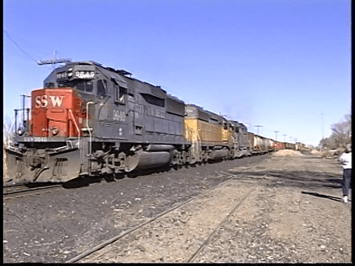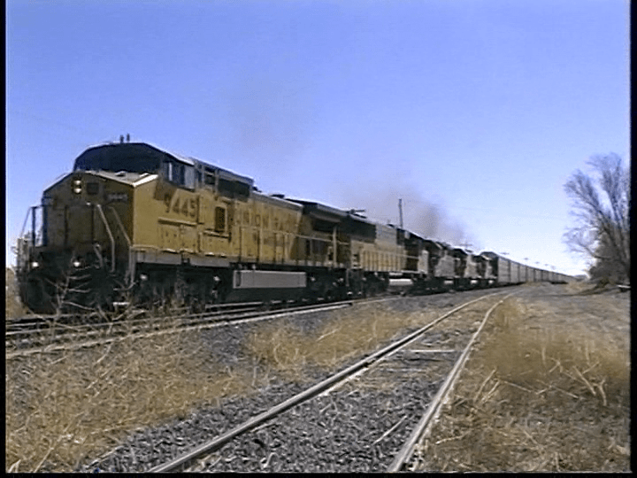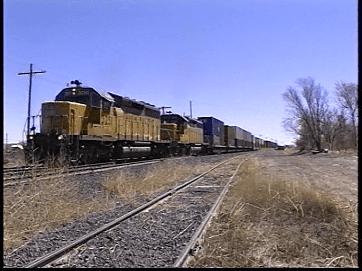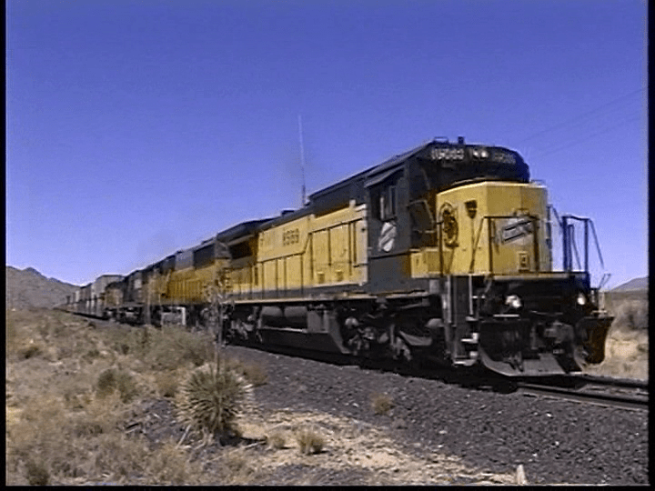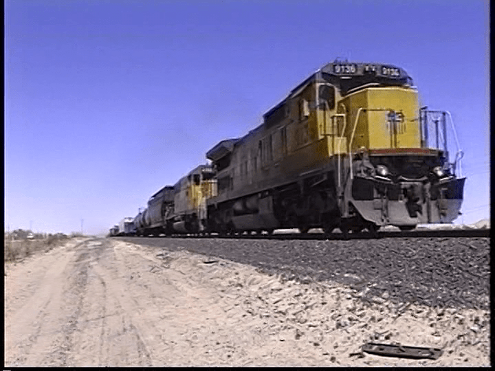 Union Pacific Sunset Route filmed in April, 1998. The small towns located between El Paso and Fort Worth, Texas. The action is centered around Sierra Blanca. This junction splits into two Eastbound lines here. The northern route to Fort Worth is old Texas and Pacific. The Sunset Route heads South to San Antonio.