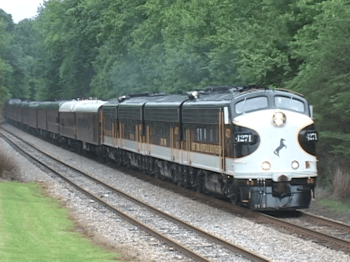 NS 4271 is an Electro-motive F9A. Westbound Business Train. Connelly Springs, NC 05-27-09.
