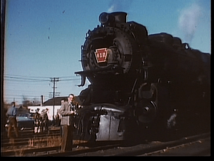 Pennsylvania 612 (K-4)hauls a Farewell to Steam Special on October 20, 1957. Sea Girt to Jamestown, New Jersey. That is our Cinematographer, Ben Young standing there.