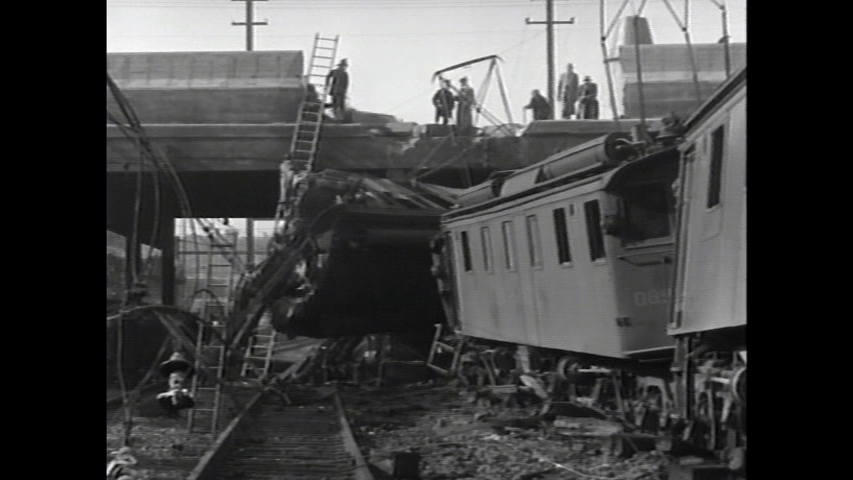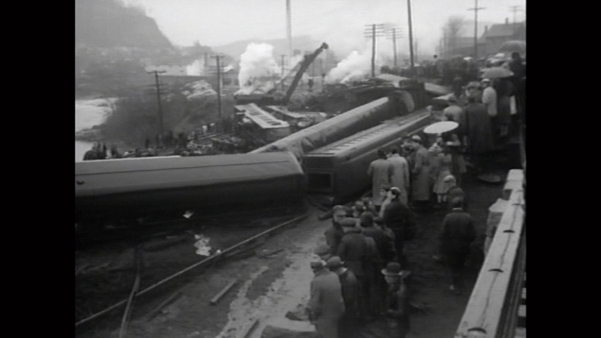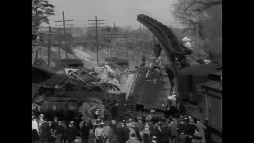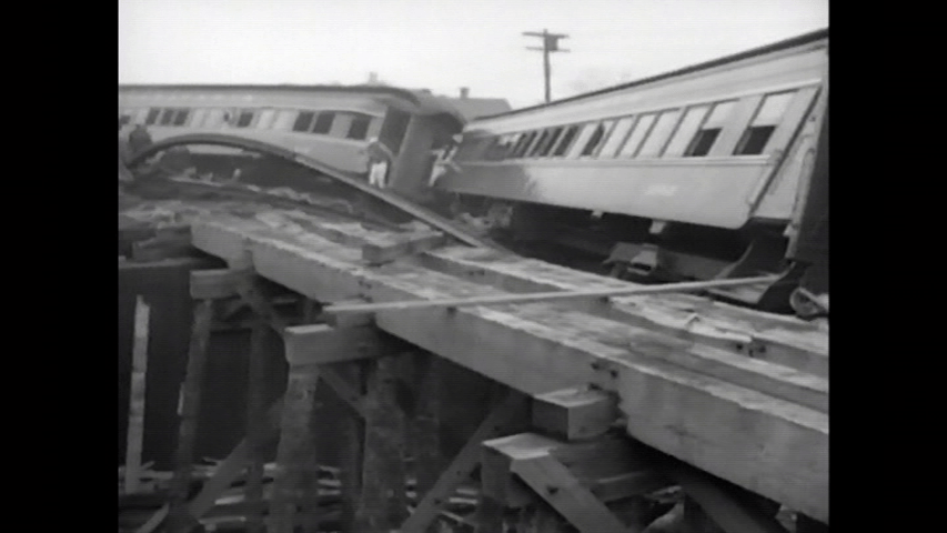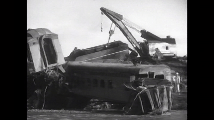 Pennsylvania Railroad at Woodbridge, New Jersey in 1951. The Broker had 1,000 commuters and derailed from a temporary wooden trestle.