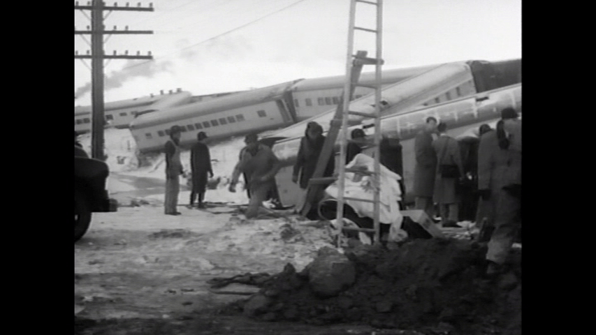 Union Pacific at Wyuta, Wyoming in November, 1951. Eastbound City of San Francisco rear-ended the City of Los Angeles at 77mph. An extended look at the wreckage strewn across the snow.