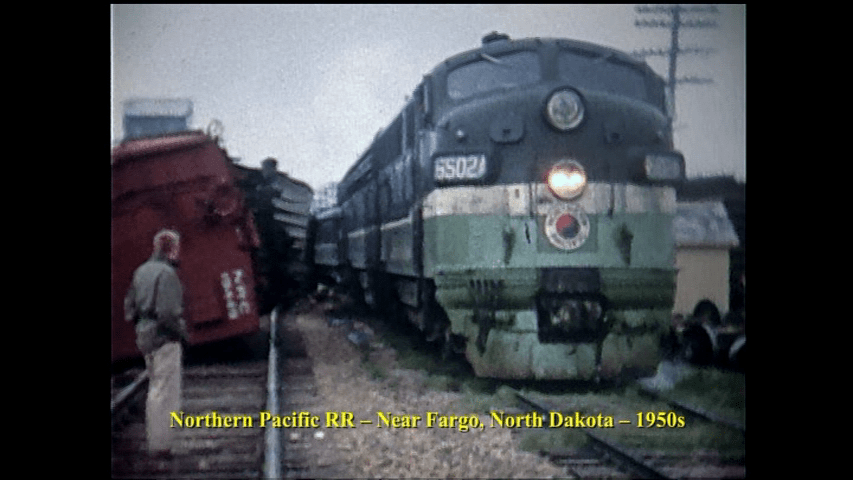 Northern Pacific 6502A leads near Fargo, North Dakota circa 1950s. A Passenger Train eases past a derailed freight on a temporary soo-fly. There is a series of assorted NP mishaps here.