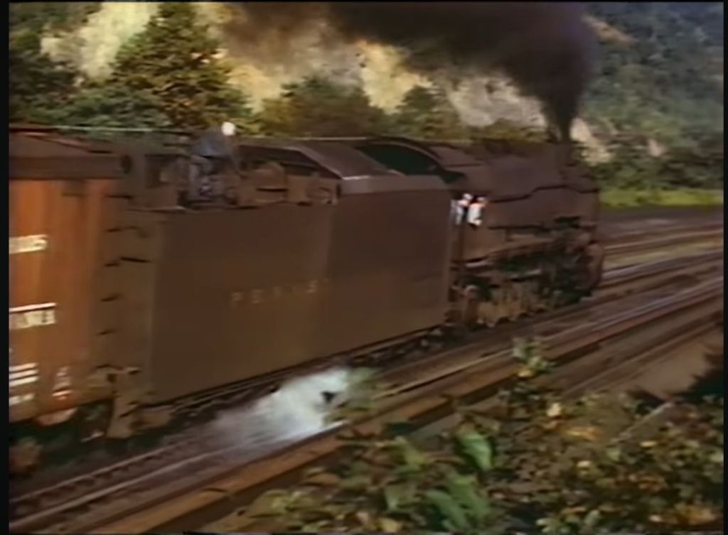 Notice the curious looks from the three trainmen towards the guy with the movie camera. The M-1 scooping water on the fly. Jack’s Narrows on the Pennsylvania Middle Division.